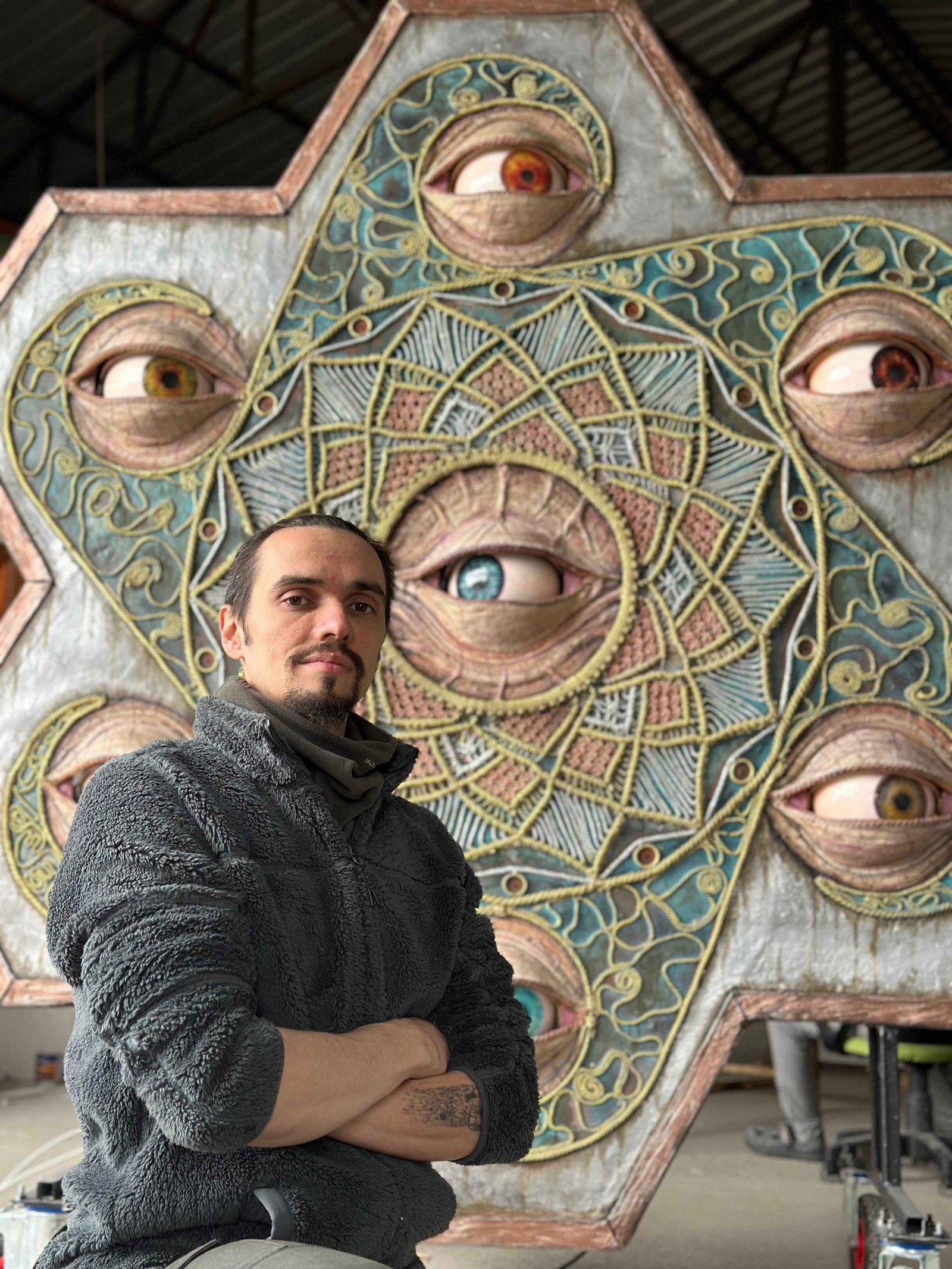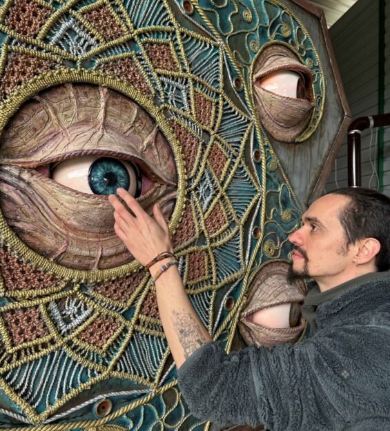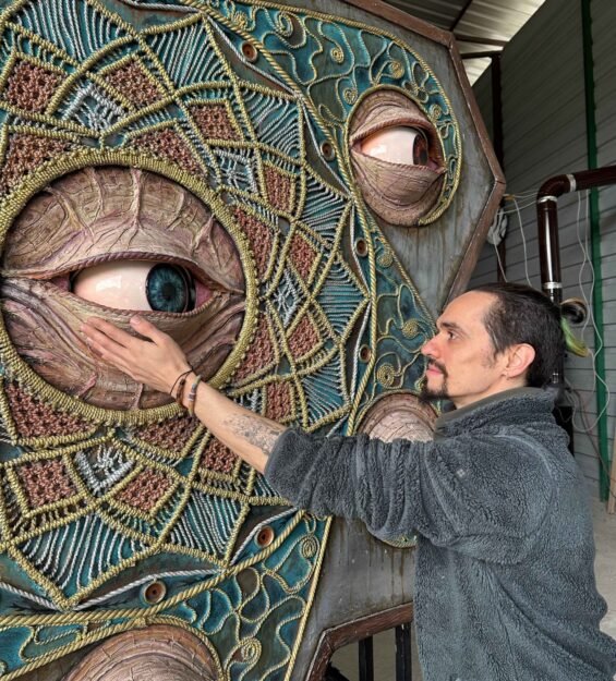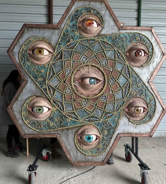 Eloa fiber heykel modeline ait ürün görselleri üzerinden altıgen formunu, makrome mandala desenlerini ve kinetik hareketli göz detaylarını yakından inceleyebilirsiniz. Fiber heykel üretimi, özel heykel tasarımı ve dekoratif sanat enstalasyonu çözümleri arayanlar için Eloa modeli, estetik ve bohem tasarımıyla öne çıkmaktadır.