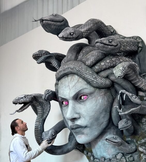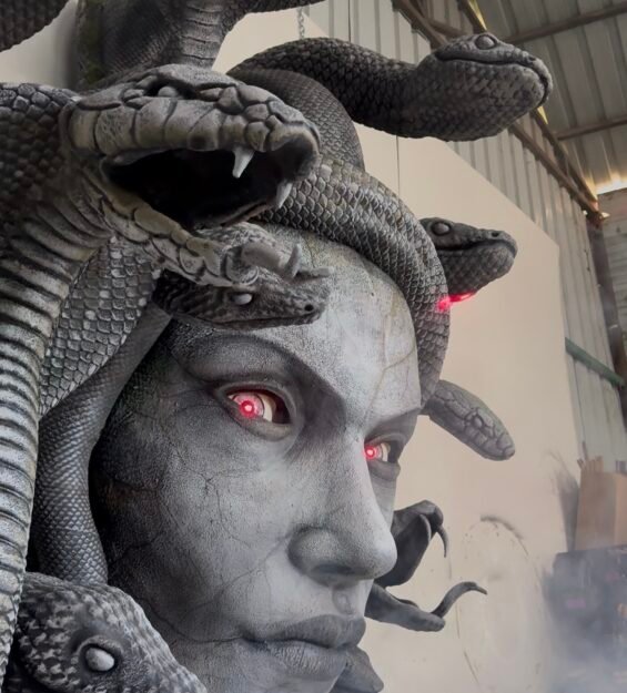 Medusa Fiber Heykel – Büyük Boyutlu Animatronik ve Lazer Işıklı Heykel