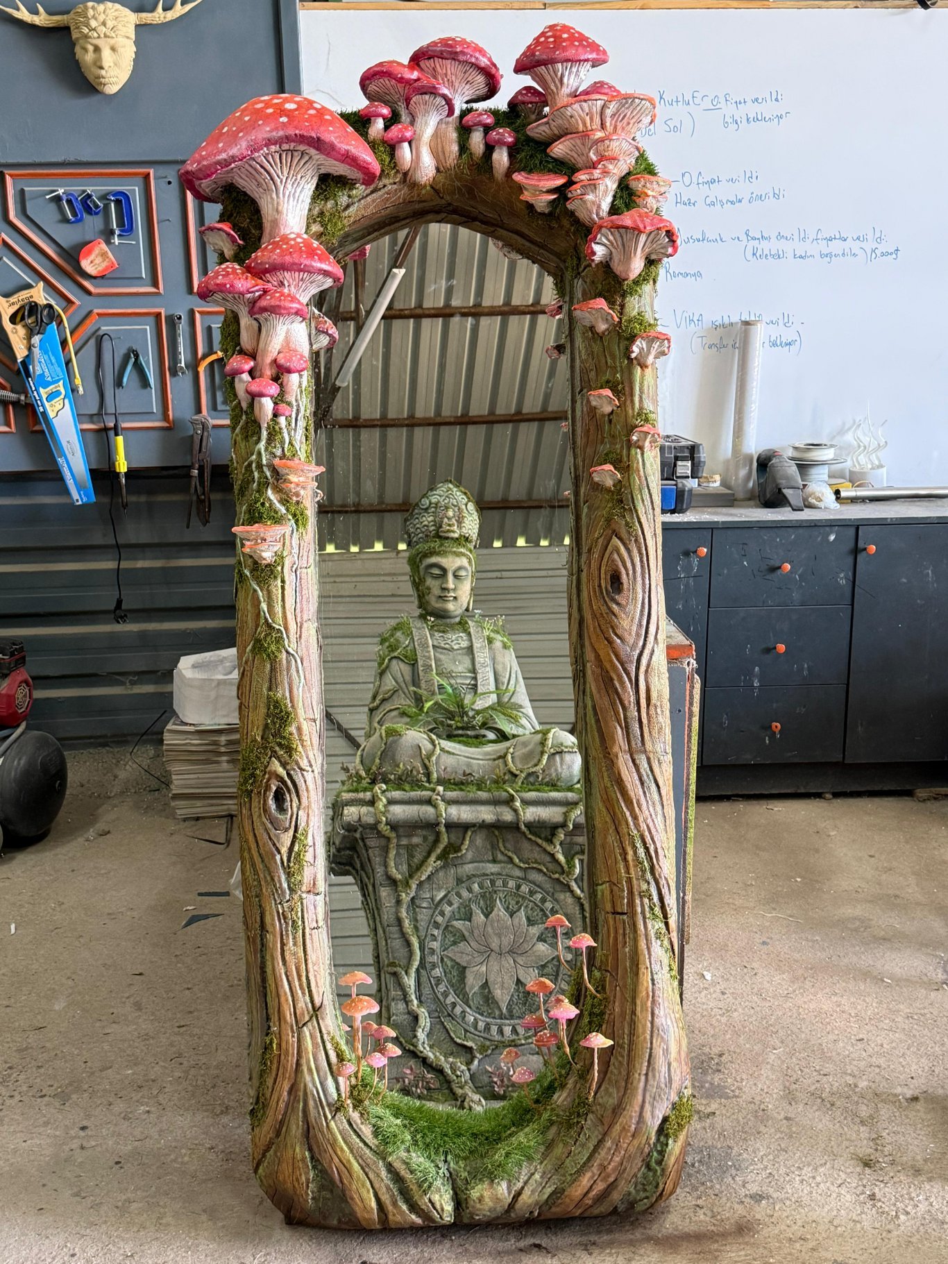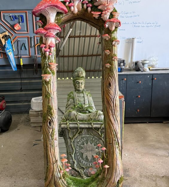 Fungi fiber ayna modeline ait ürün görselleri üzerinden aynanın mantar ve yeşillik temalı detaylarını, doğal tasarımını ve özgün formunu yakından inceleyebilirsiniz. Fiber üretimi, özel tasarım dekoratif ayna ve modern iç mekân çözümleri arayanlar için Fungi modeli estetik ve özgün tasarımıyla öne çıkmaktadır.